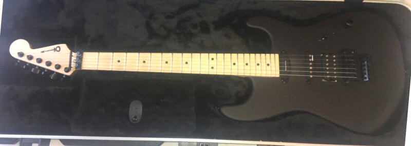 10105 | San Dimas | Pitch Black | maple | Strathead | HSS | Floyd Rose | |||