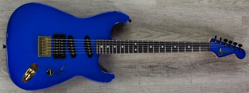 | 10916 | 286-8431-000 | San Dimas | Nitro Aged Roasted Alder Sonic Blue | roasted b/e maple | Strathead | 2H | Floyd Rose | 21 frets | |