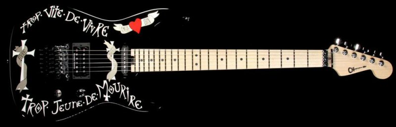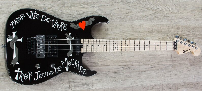 | 10794 | 286-5005-803 | Dinky | DeMartini Frenchie Black | maple | Strathead | HS | Floyd Rose | ||