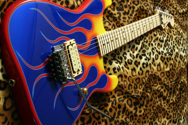 | 7599 | San Dimas | Vintage Eldred Flames | maple | Strathead | 1H | Floyd Rose | |||