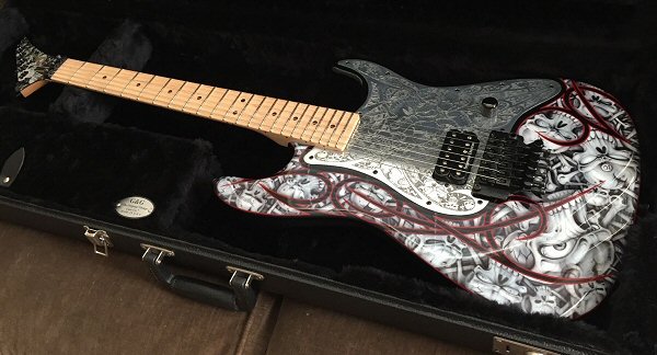 | 7519 | 286-9181-000 | San Dimas | Pen & Ink Skulls | maple | Strathead | 1H | Floyd Rose | 11-20-2006 | |