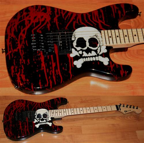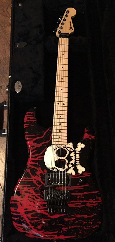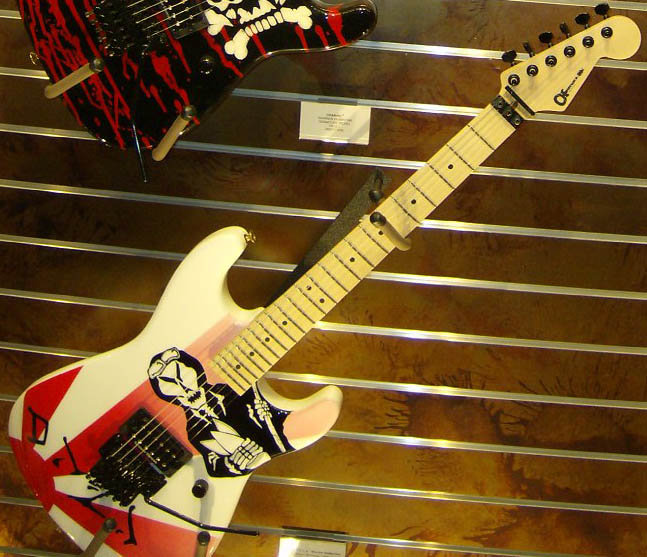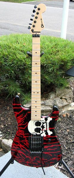 | 7916 | 286-9171-000 | San Dimas | DeMartini Skull | maple | Strathead | 1H | Floyd Rose | Winter Namm 2008 guitar | |