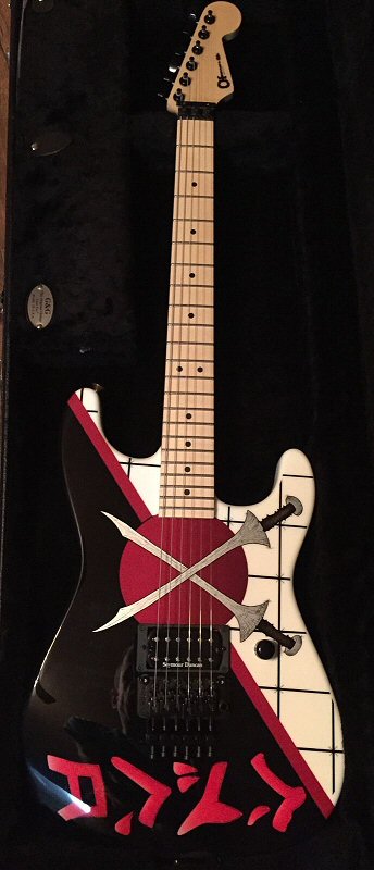 | 7885 | 286-9169-000 | San Dimas | DeMartini Crossed Swords | maple | Strathead | 1H | Floyd Rose | Winter Namm 2008 guitar | |