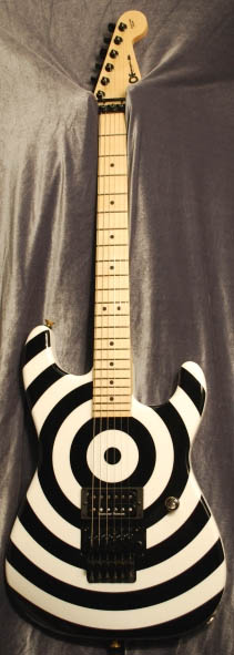 | 7915 | San Dimas | Bullseye (Black on White) | maple | Strathead | 1H | Floyd Rose | Winter Namm 2008 guitar | ||