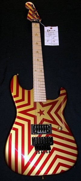 | 8720 | 286-9169-000 | San Dimas | DeMartini Crossed Swords | maple | Strathead | 1H | Floyd Rose | 03-??-2010 | Signed by Warren DeMartini |