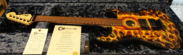 | 9036 | San Dimas | Skulls (Mike Learn) | ebony | Strathead | HS | Floyd Rose | Cross Inlays, Jon Levin Sig. Guitar | ||